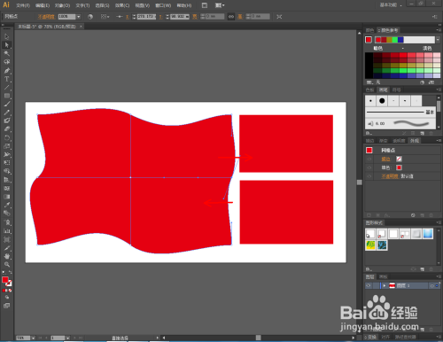 点击【网格东西】,鼠标点击第一个矩形的中间点,按图示操尴尬刁难矩形进行变形调整(如图所示)。同样的步调,完当作别的两个矩形的变形操作;