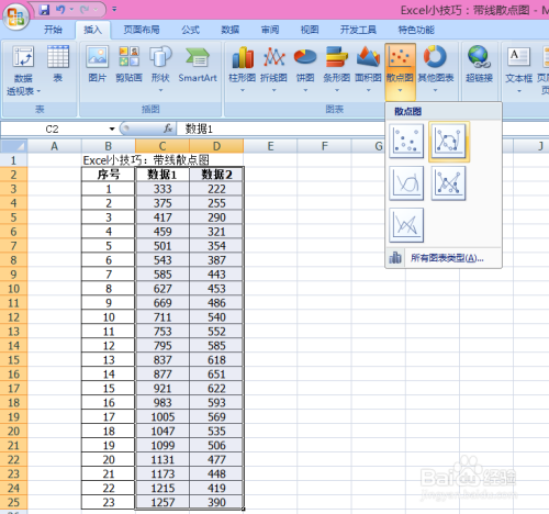 Excel小技巧:带线散点图