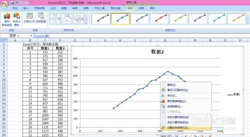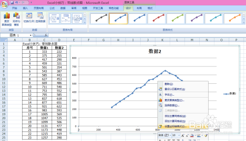 6、点击散点图程度坐标,右击,设置数据系列格局