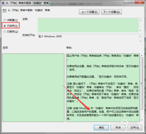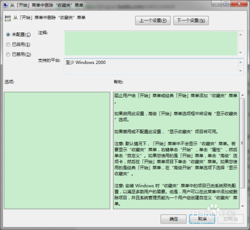 双击打开“从开始菜单中删除收藏夹菜单”设置装备摆设窗口;