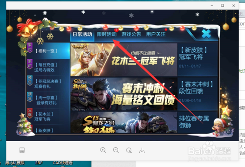 首先我们打开而且更新王者荣耀,进入最新界面,然后在本家儿页中看到右侧导航中的活动,点击活动。