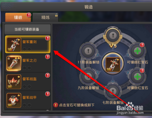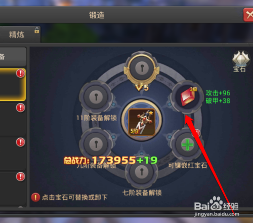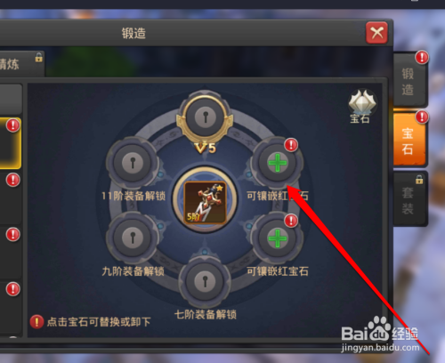 装备选择好今后,我们在锻造的按钮下面,点击宝石按钮。