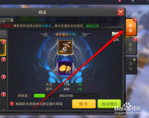 点击锻造的按钮,进入锻造的页面,点击强化按钮。
