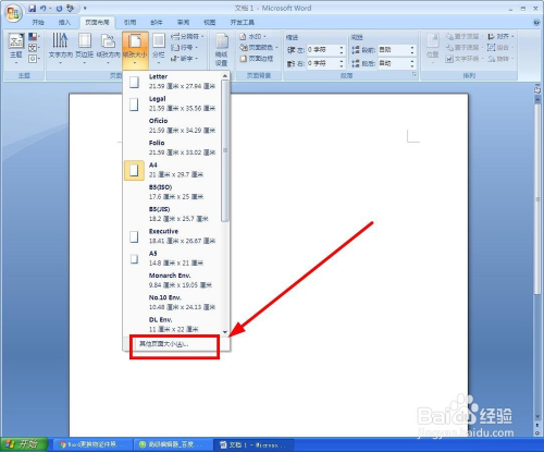 鄙人拉菜单中,选择“其他页面大小”单击
