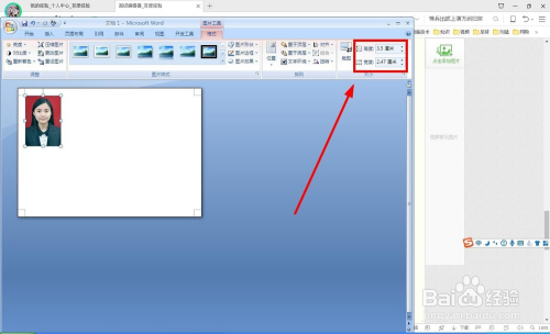 选中图片后点击“格局”选项卡,在“大小”中输入高度“3.5cm”,宽度“2.47cm”,如有不需要的处所可以用剪裁东西去除。完当作第一张