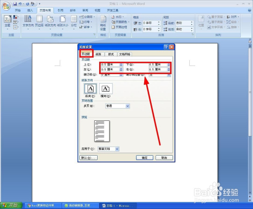 然后点击“页边距”选项卡,并把上下摆布都是设置为:0.5mm