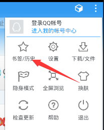 进入到更多页面,点击箭头所指的书签/汗青,来进入到相关页面,进行设置。