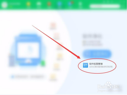 净化选项卡中,选择软件权限办理选项。