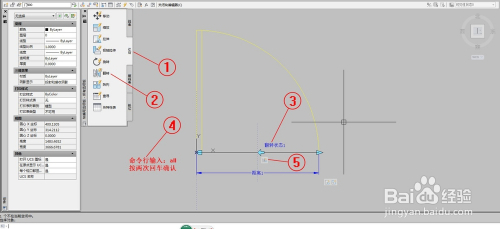 单击中“参数”,选择“翻转”,在辅助直线上靠左位置单击鼠标,指定翻转投影线的基点,然后在左侧再单击一次,指定投影线的偏向,再单击鼠标指定“翻转标签2”的位置。