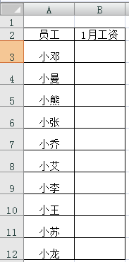 2-在B2单位格输入响应的字段,好比“1月工资”