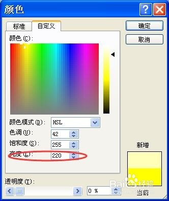 在颜色对话框中选择“自界说”,将“颜色模式”设置为“HSL”。