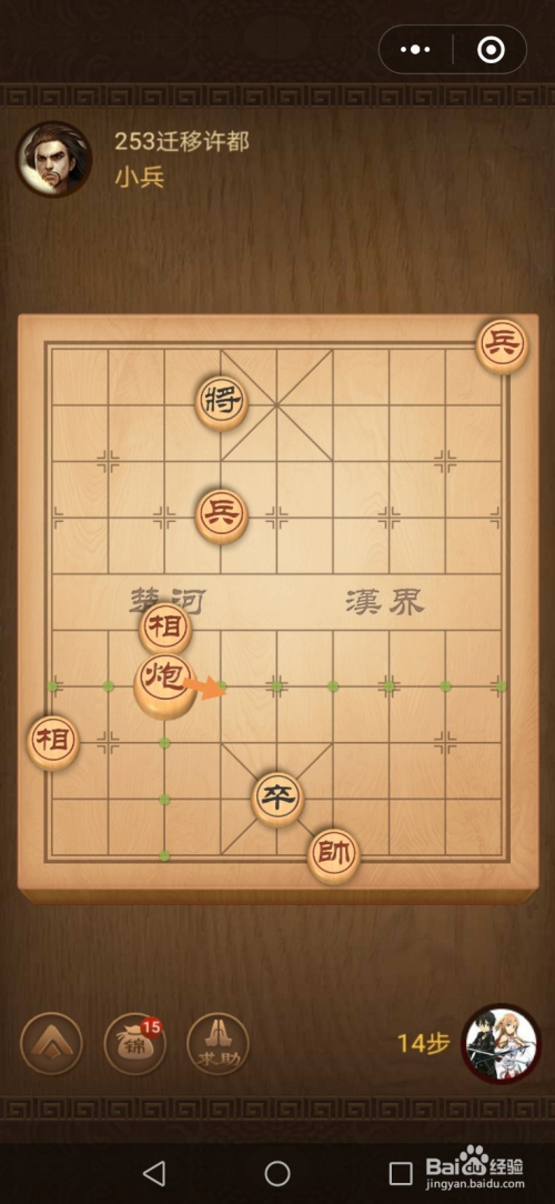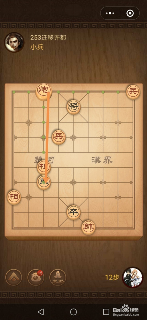 第十五步炮标的目的前移动六步就过关了。
