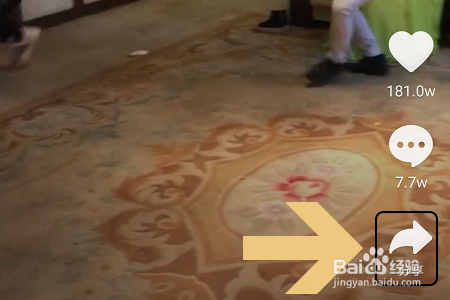 首先要确保手机内安装的抖音是最新版本,然后找到本身喜好的一段短视频,在视频的右侧我们会看到一个分享图标;
