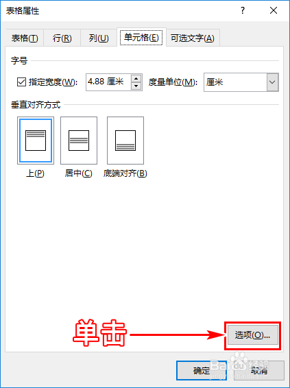 紧接着在“单位格”界面中我们点击“选项”,这时会呈现另一个对话窗。如图所示:
