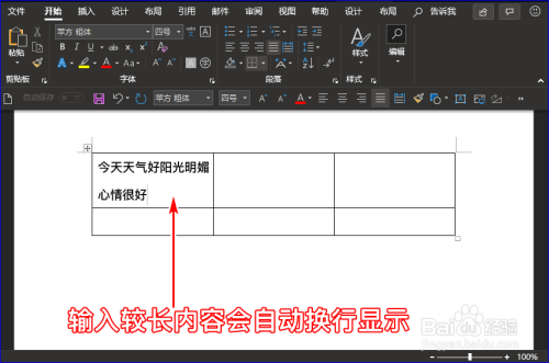 我们在Word表格的单位格内输入较长的内容,会发现单位格内的内容会主动换行,酿成两行显示,并且单位格的行高也会增添。如图所示: