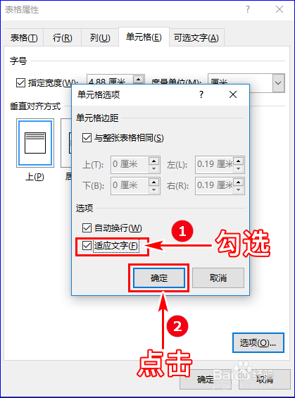 在“单位格选项”对话窗中我们勾选“顺应文字”选项,再点击“确定”按钮,如许单位格中的内容就本身顺应单位格大小啦!并且跟着表格在转变哦!