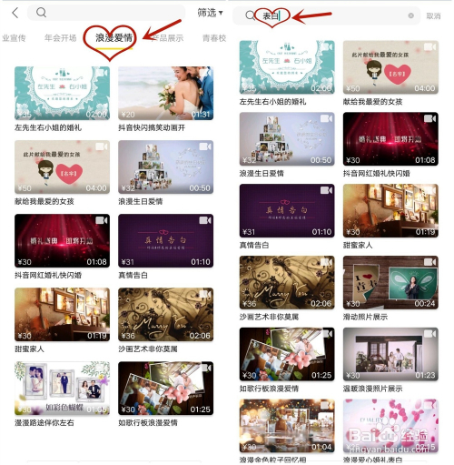 当然竖版视频里面也有很是丰硕的恋人节剖明模板,操作步调跟横版视频没有什么区别,本家儿要就是时长短一些,放在年夜屏幕上没有横版视频结果好,可是用来暗里分享给阿谁TA仍是很是不错的。