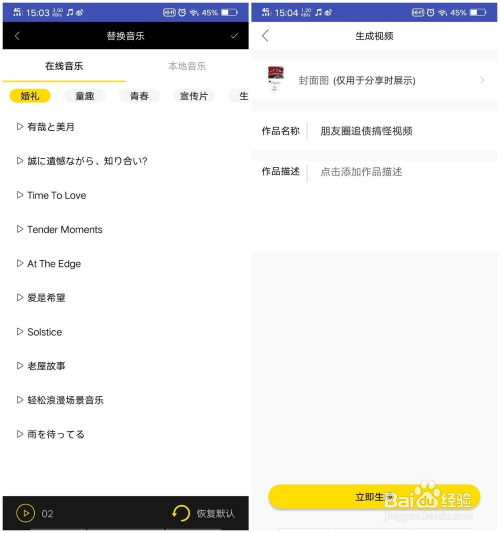 然后更改文字和音乐,传影记自带丰硕的音乐库,当然你也可以本身上传当地音乐。编纂器有音乐裁剪功能,你可以选肆意时段的音乐。最后点击当即生当作,稍等半晌衬着完当作后就可以下载分享啦~