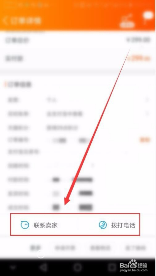 订单的下方,有阿里旺旺和拨打德律风,两种联系卖家的体例。