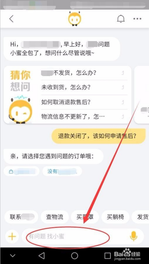 选择拨打德律风按钮,可直接打德律风给卖家,申请售后。