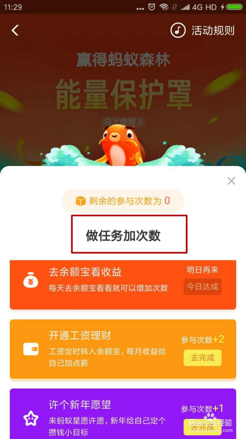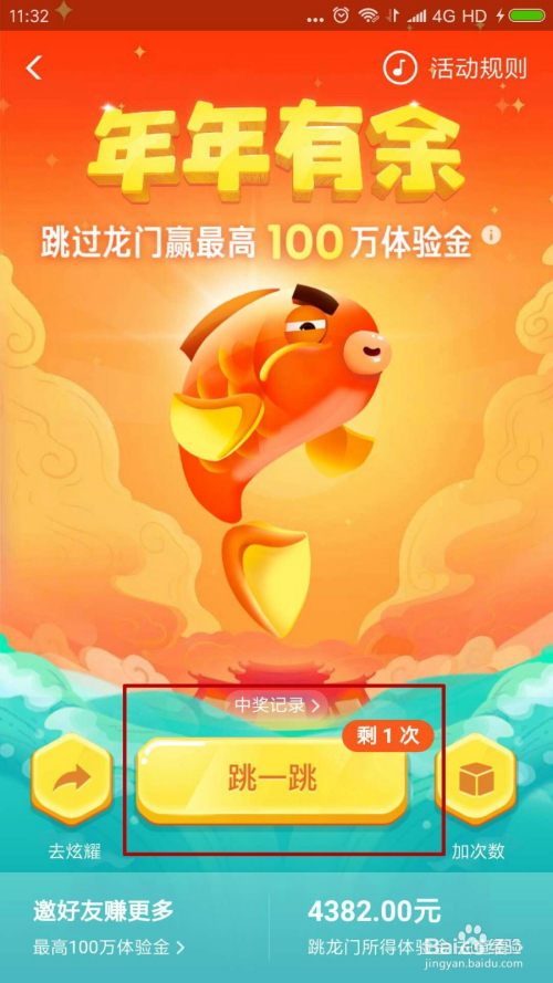 付出宝近期推出了跳龙门获得余额宝体验金的活动,下面简单介绍怎么获得更多活动次数。