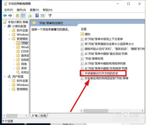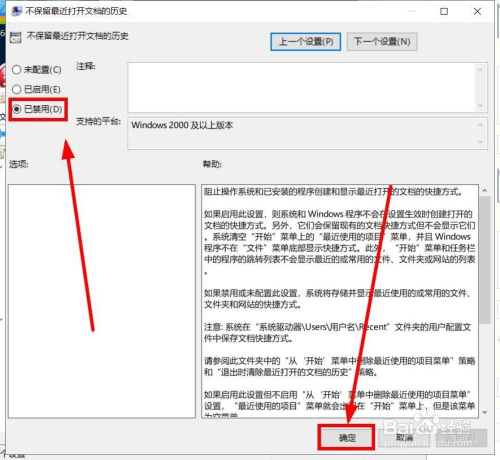 在“设置”下面,双击“不保留比来打开文档的汗青”