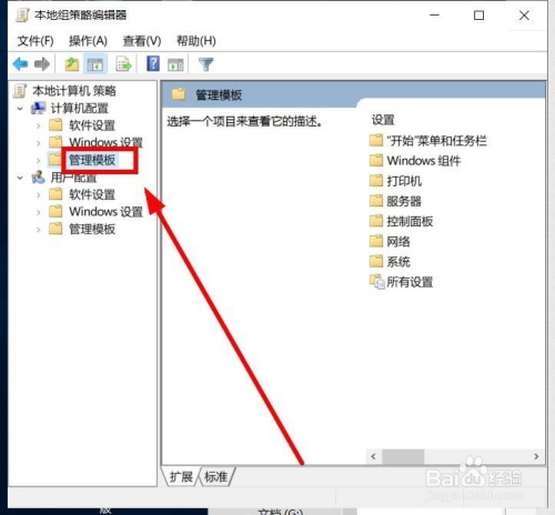 在“当地组策略编纂器”对话框,单击“办理模版”