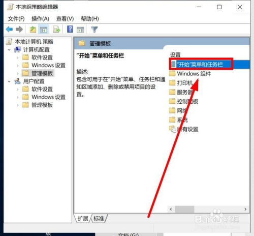 在右边细节部门,双击“开始菜单和使命栏”