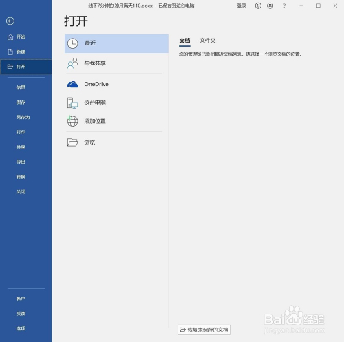 我的系统安装Word365之后,发现打开文档时,没有了“比来文档”的显示,这是怎么一回事呢?如何找回这个常用功能?