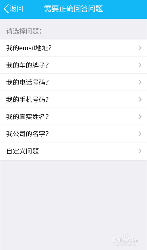 若是你设置的是需要准确回覆问题,那么你就要选择一个问题,或者点击最下面的自界说问题进行设置。