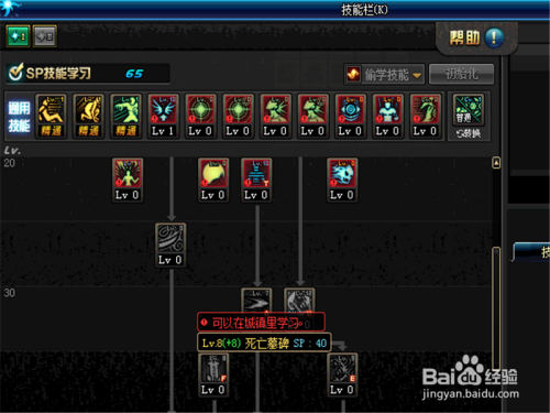 20级的技术按照小白之前的保举,绿色的技术,全数点满即可。