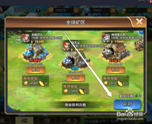 在矿产资本的挑战页面,每一次显示3个资本挑战。