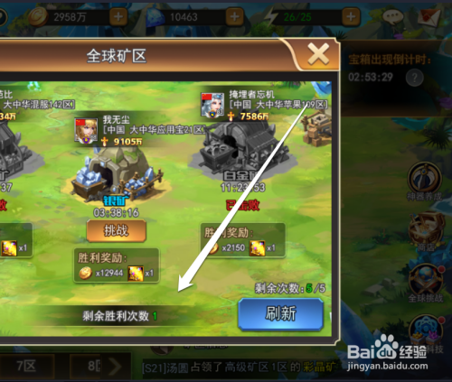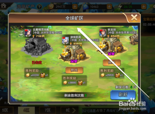 点击刷新按钮今后,就会呈现新的矿产资本。