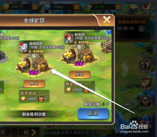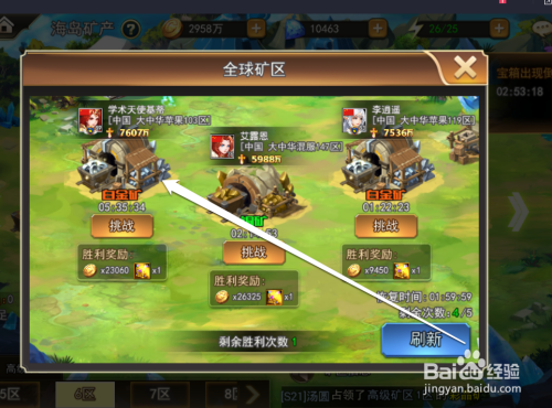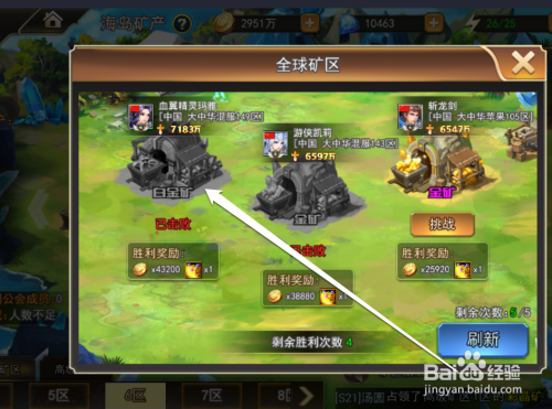当一个矿产资本,被挑战过今后,会显示已击败。