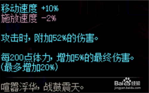大师不妨看一部属性,10%的移速,很有诱惑力,并且进犯附加52%的危险,很是带劲。