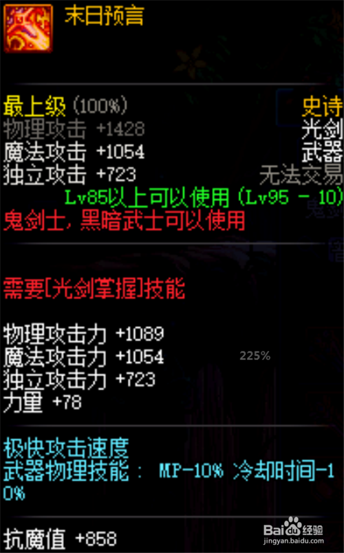 末日这把兵器,很洋气,尤其是属性的加当作很是棒。