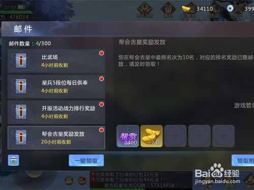 在邮件中可以获得系统赠予的元宝。