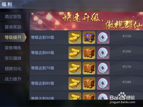 完当作福利中的各项使命都可以获得元宝与银两。