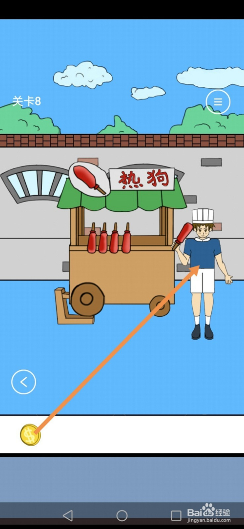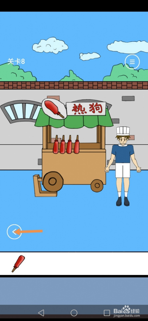 在左边,将热狗拖动到教员身上,然后点击标的目的右箭头到右边去。
