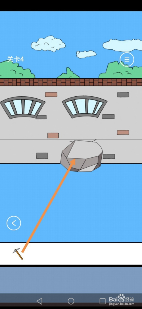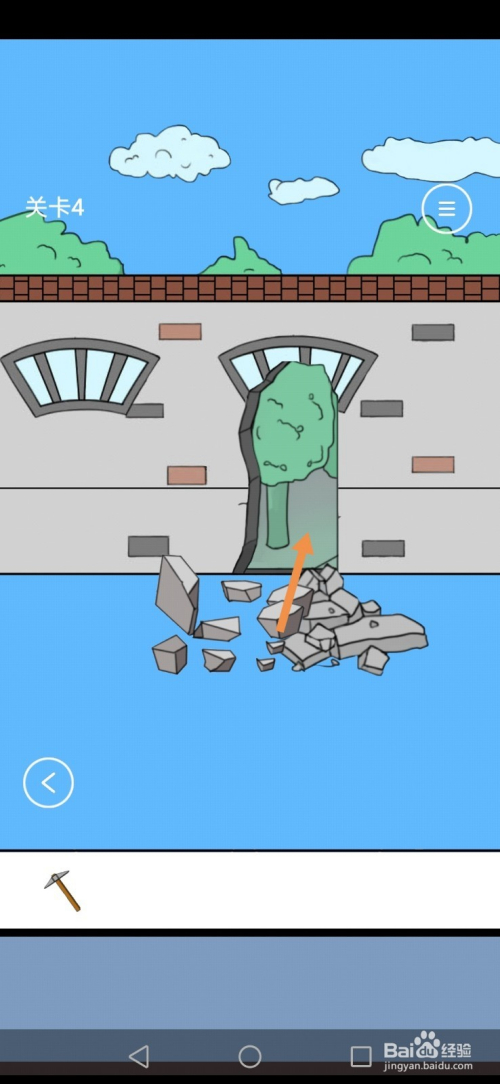 在右边,将铁镐拖动到年夜石头上,然后将铁镐拖动到墙上裂痕处。