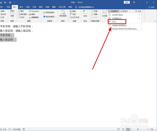 在文本选项中有个“文档部件”我们选中单击