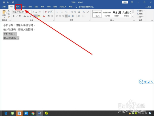 首先输入“手机号码:输入验证码:”字样