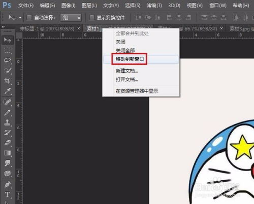 第三步:选中此中一张图片,在题目栏处单击鼠标右键选择“移动到新窗口”。