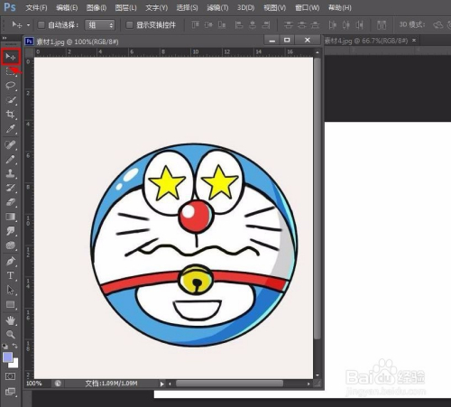 第四步:在左侧东西栏中选择“移动东西”,将图片拖动至白色画布中。