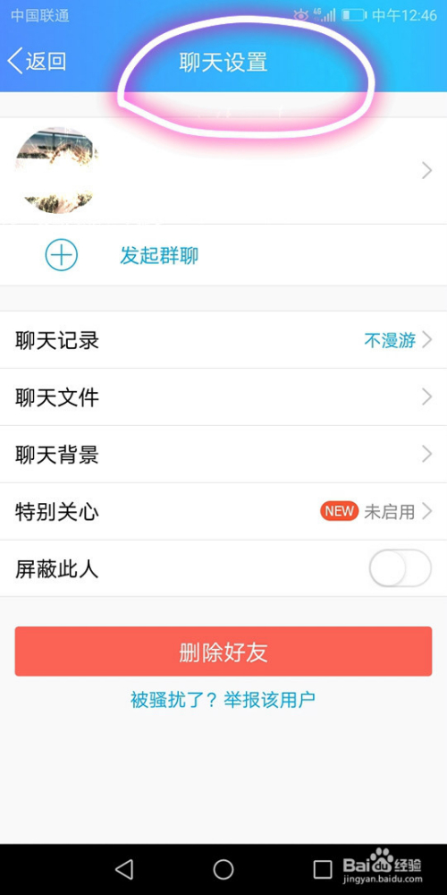 聊天设置页面此时呈此刻手机屏幕上;