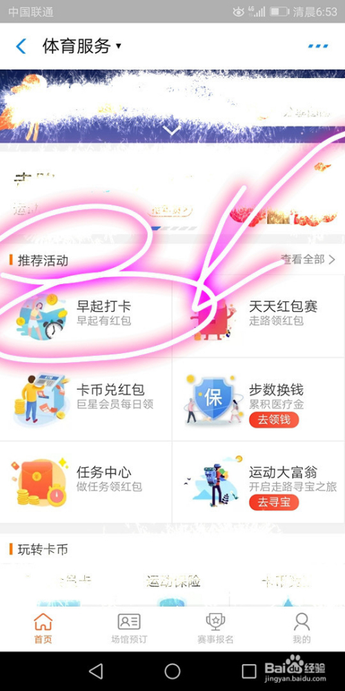此时就会打开体育办事页面,在页面中选择夙起打卡活动;