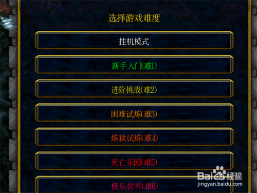 开局之后,判断的选择游戏难度,这里的挂机模式就没需要了,我们可以直接选择难度1.