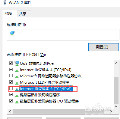 今朝收集IP6还未普及,所以关了它吧。我们打开节制面板,点击收集与Internet,点击收集和共享中间,点击更改适配器设置,在毗连上的WLAN双击,点击属性,打消勾选Internet 和谈版本 6(TCP/IPV6)