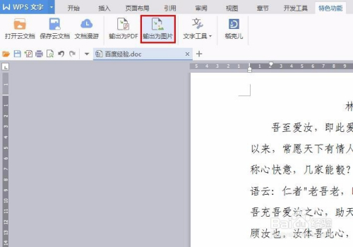 第二步:在菜单栏“特色功能”中选择“输出为图片”。