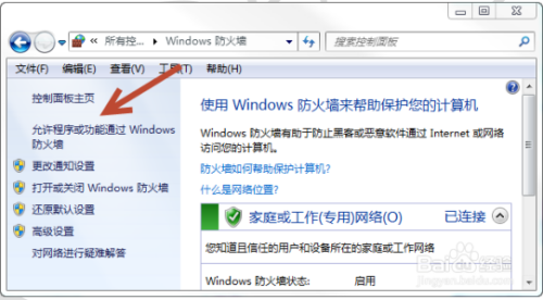 单击“WIndows 防火墙”选项,打开“Windows 防护墙”窗口,如下图所示: